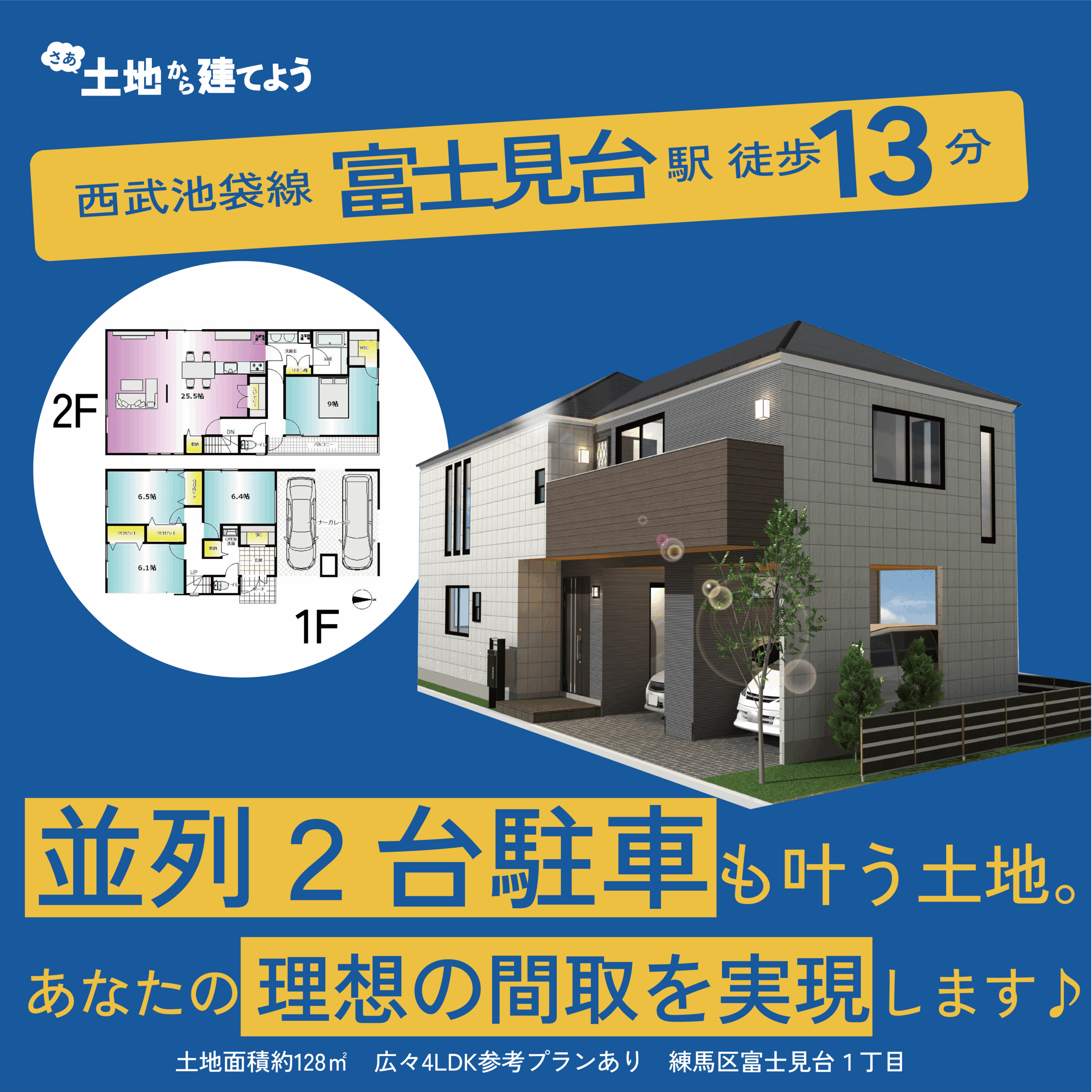 一軒家をお探し方の多くは、「新築戸建」を検索します。2025年8月現在「東京都世田谷区」で販売されている新築戸建ては約111軒。それに比べて販売されている土地の件数はなんと約392軒です。つまり、土地を選択肢に加えた場合には約4倍も近い条件の中から住まいを探すことができるんです!